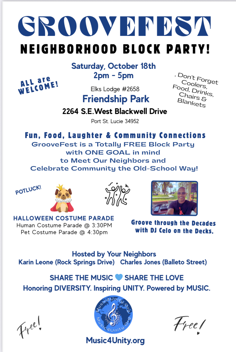 Elks Lodge #2658 Friendship Park 2264 S.W. West Blackwell Drive, Port St. Lucie, FL, United StatesHonoring DIVERSITY. Inspiring UNITY. Powered by MUSIC.